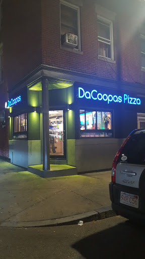 I am a Courier from New York, and dropped off a package to Signature at Logan AP. They told me of a place around the corner on Saratoga St. It was closed and I saw DaCoopas Pizza across the street. Thought Id try it. I talked to the clerk and couldnt make up my mind: a Sub or slice. Scott the pizza guy, said try a slice and hed buy if I didnt like it. Boy was it great. I am always worried about the quality of cheese. But, Scott said it was the best. He was right. I ordered another slice. The crust was tasty and just right. The sauce and cheese of the pizzas from DaCoopas, is better than the ones I eat all over the Northeast. Boston is lucky to have such a great pizza. I cant wait till I get another trip to Boston. Thanks Scott for an authentic slice. Bob Santero