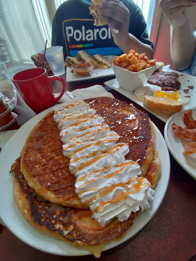 WOW! This place is great. The pancakes are HUGE! Great bacon and serve-your-self coffee! Delicious, juicy omelets and fresh fruit. Fabulous service, too. Do NOT get the turkey sausage.