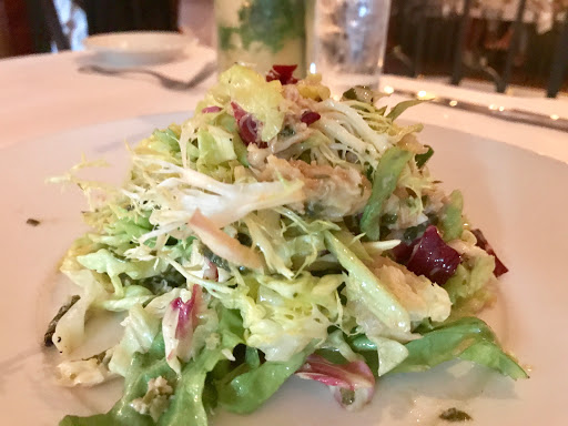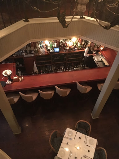 sitting upstairs, having dinner in the back bar is a nice change from the dining room - though both are nicely decorated. the short rib appetizer is enough for dinner and absolutely divine. the clams casino pasta is tasty - best to mix the casino in with the pasta.the calamari though nicely done in corn meal was a bit tough. the service however, was excellent and attentive. price, as is true at most mv restaurants is very high.