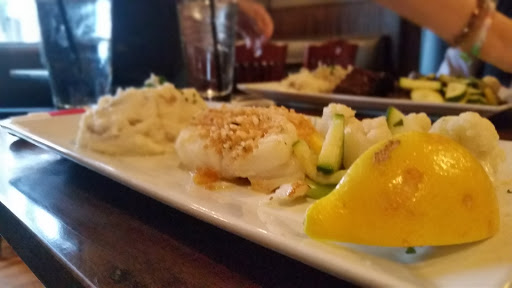 AMAZING!!! We got the BBQ nachos for an appetizer... sooooooo good. Had pulled pork, cheese, fresh salsa, guacamole and sour cream. HUGE portion. My boyfriend and I both got the surf & turf. He got it with the baked haddock, zucchini, and salad, and I got it with the fried haddock, mashed potatoes and salad. We each tried each others dishes and were both extremely please. The drinks were very good, and generously strong!! The staff was very pleasant, as well. :) Highly recommended by us!!!