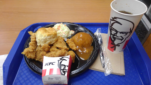 This KFC is clean and has friendly employees, parking and conveniently located on a main thorough way