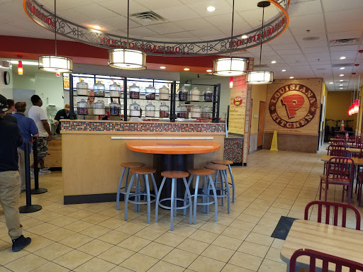 My review is more like 3.5 stars, rounded up for good measure. This is a pretty good fast food chain, not to be compared with other chicken joints in the area that are non fast food. Its on a similar level of KFC. The Popeyes of the Northeast are a hard find, so its pretty special one has graced the Riv. Service is usually poor here. Most of the staff seems put out to help, and sometimes you even get extra sass when you dont deserve it. And usually expect a wait because something usually needs to be fried (which can be more of a good thing, at least the food is fresh). Their chicken is tasty, and their unique sauces are even better. Try the blackened ranch for subtle spice. The sides are also pretty good. Fries are delicious, mashed potatoes are yummy and mac and cheese is good. It is on the pricier side for fast food, but its worth a try! The inside is really clean and large so seating is never an issue.