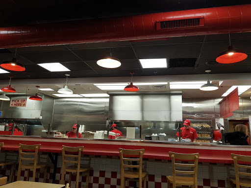 One of the best Five Guys Ive been to. Service can be a little slow, but not terribly so (the fry station seems to always be the holdup). Theres plenty of free peanuts to snack on while you wait, so you cant really complain. They have two of Coca-Colas "make your own drink" touch-screen machines, so you can also spend a little time trying out some soda flavors not otherwise available.