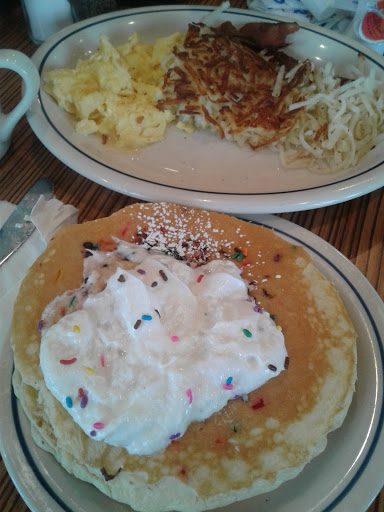 I always enjoy IHOP. The food is good, fun, and at a good price. I found the music a bit loud. However, we were sitting right under a speaker.