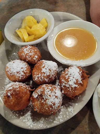 Carrot cake pancakes and hash are to die for! Pineapple fritters make a great breakfast dessert!!