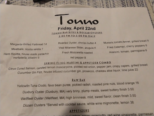 If I could give it more stars, I would. Tonno is amazing. Hands down the best tuna steak I have ever had. The appetizers were fresh and very tasty. The staff was attentive, well-versed in the menu/specials, and very accommodating. We went to celebrate a birthday and they made it special for all of us. If youre ever in Gloucester, its a must!