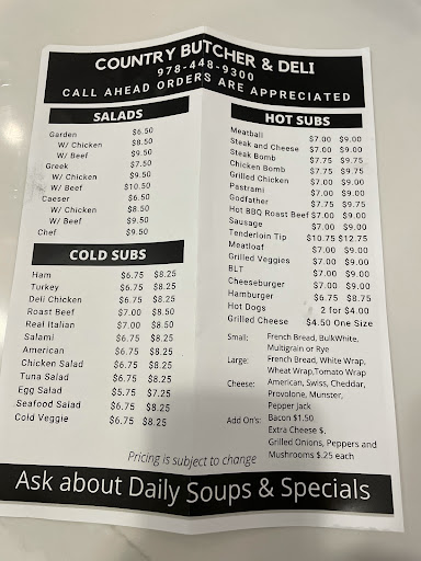 Excellent experience just recently with the Country Butchers catering menu. Ordered sandwiches, shrimp, and some other hot items (wings and sausages). All very nicely prepared, on time, and reasonably priced. My guests thoroughly enjoyed all the food and asked where we had gotten it.