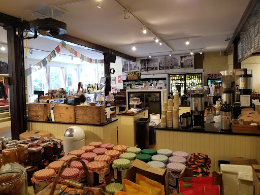 Olde tyme general store serving breakfast and lunch with seating, and a good craft beer section. Also check out the bike shop (seperate) in the basement of the building.