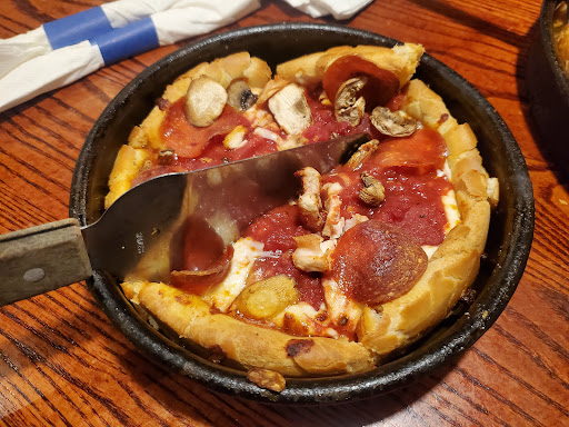 I had ordered the small cheese deep dish pizza. Took forever to come out. The dough texture is pastry like. Like a short crust dough, kinda crumbles in your mouth. Was around $12, I thought pricey. Anyway, it was ok. There was another pizzeria that was real close I was trying as well, a comparison so to speak. UNO was much better. I hated the pizza from the place that was walking distance from UNO. Anyway, I may or may not go back. Is ok. Inside was like a bar to me.