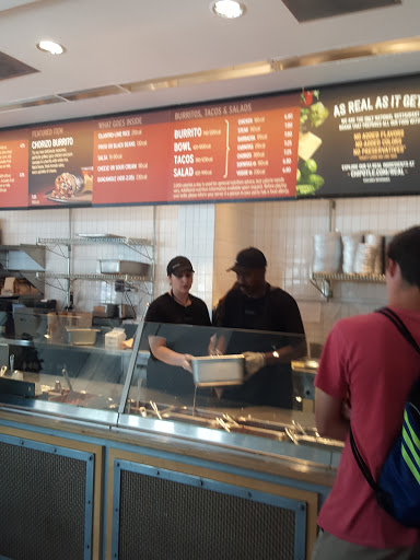 The employees have little to no customer service skills. Out of the 7 employees behind the counter 5 of them were having a private conversation and not taking orders. I waited in line for 45 min to have my order taken. Overall terrible experience at the derby street chipotle
