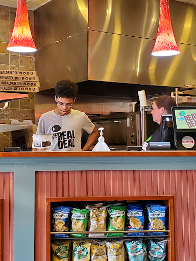 Though the name doesnt suggest it, Real Deal has the best pizza in the area: thin crust, fresh cheese and sauce. That is, unless you like the ubiquitous Greek pizza, which, to me, is an oxymoron -- like a Chinese knish or Italian moo goo gai pan. Real Deals pizza is Italian pizza, the way its supposed to be. There is also a wide variety of sandwiches, subs, paninis and wraps; all that Ive tried so far have ranged from very good to excellent. The salads are fresh as well. (I cant attest to the Caesar dressing, as I get the chicken Caesar salad without dressing and then put my own on.) We live a short walk from Real Deal, and were so happy they came to Jamaica Plain.