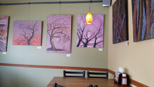 Great selection of food, fresh and fast, great fries and desserts, rotating art on walls, friendly!