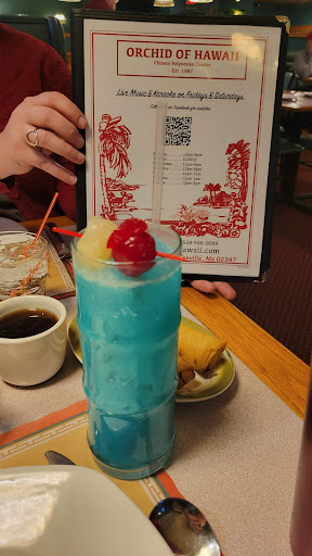 Orchid of Hawaii is apparently a popular karaoke spot. A lot of people were in the bar Friday night waiting for the party to start. The dining room is bright and clean, and the waiters pleasant. The vegetables in our Tangerine Beef were fresh. But otherwise the food was disappointing. Everything had too much oil in it.