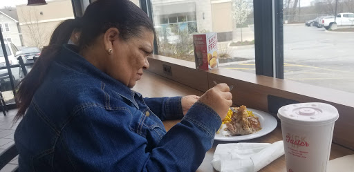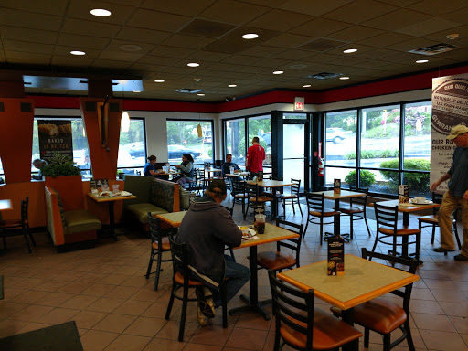 Food was very good. Staff were pleasent but manager was rude and even commented "Im so aggravated " and proceeded to complain to staff at the counter. Bathrooms were dirty and smelled, and the womans room toilet needed to be fixed.