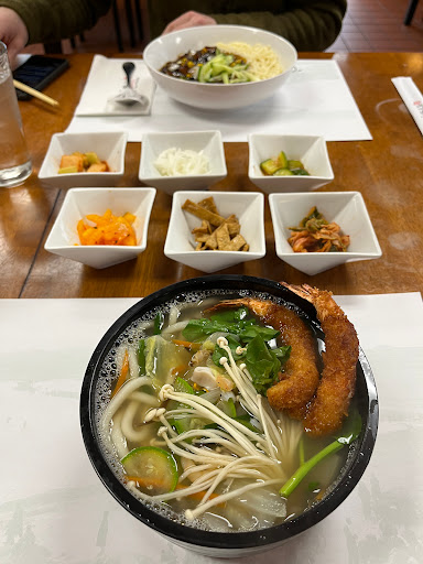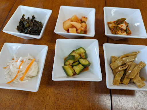 Best Korean food in this area. Every meal you order is served with complimentary soup, 8 different types of pickled sides, and post meal lemon spiced tea that is an amazing palette cleanser. Love this place. I usually get the hot bowl bibimbap