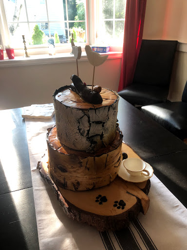 Just two days before our engagement party, my fiance called the bakery we had ordered our cake from to confirm a pick up time. Unfortunately this baker (which shall remain unnamed) misheard the date of our party, and they were unable (or unwilling) to rush a cake for us in time. My fiance then went to Cake. in Lexington. Frantically she explained that we needed a cake in two days. Cake did not hesitate to take our order and assure us they could make something work for us in time. We knew it was short notice so we asked for just a plain white cake knowing they were doing us a huge favor. Not only did Cake make our cake on short notice, but they went above and beyond. If you can see in the picture we got way more than a plain white cake on a rush. Cake took the time to make this beautiful two tiered, detailed master piece. We are so happy with the work that Cake did, they took care of us during a stressful situation and exceeded our expectations to ensure our engagement party was going to be special. Our guests were blown away with the presentation and we got so many compliments on how delicious it was. I only hope our actual wedding cake will be as beautiful!