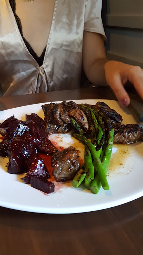 Great restaurant with tasty food, good service, and a relaxed atmosphere. The salmon with stir fry vegetables was perfectly done. They have a kids menu that includes ice cream. I was very impressed with the service. The waiter came by to check on us frequently and plates were taken away promptly. Prices are not cheap, but given the food and service Id say this is well worth the money.