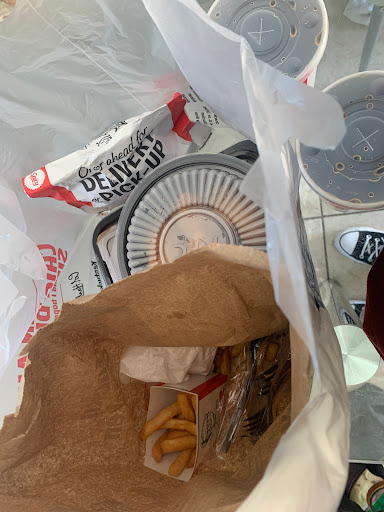 No complaints! You cant expect greetings from them, they dont get paid much to have that in mind. Did their job. Clean inside. Just wish that we could choice what we wanted. Like I dont like gravy on mashed potato, no Cole slaw in my order, wouldve loved that instead of the cookie or bread.