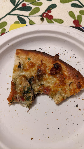 Pizza is ok. Its thin, but its not very tasty. I do like the vibe here though.