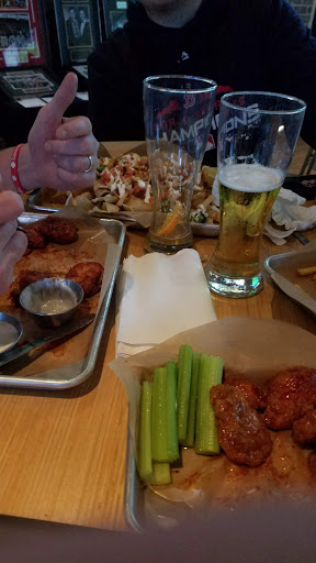 I want to like this place considering its really the only "wing" place in Mansfield, however, things get expensive real quick here, I have been here a few times with friends for various occassions and each time I end up spending over $30 and im not even full nor fully satisfied with my wing experience. The TVs all over the place are great and are in full HD, able to show the UFC live matches and always a hometown game on, as well as the table games and arcades they have are great for the kids and avid trivia or poker players. The beers are very expensive and the small order of wings could only satisfy a small childs appetite. If you step up to the larger meals, it ends up costing you an arm and a leg. In my opinion, if you want the best wings in the area, you must travel to Norton (about 3 miles away) to Wendells, although the service could be better, it is well worth the wait (oh and cash only). The other reason for the 3/5 rating is the noise level, which is a little lighter than going to an actual sporting event, to the point we need to shout across the table to be heard, not ideal for sure, maybe takeout would be a better option for those looking for a quick wing "fix".