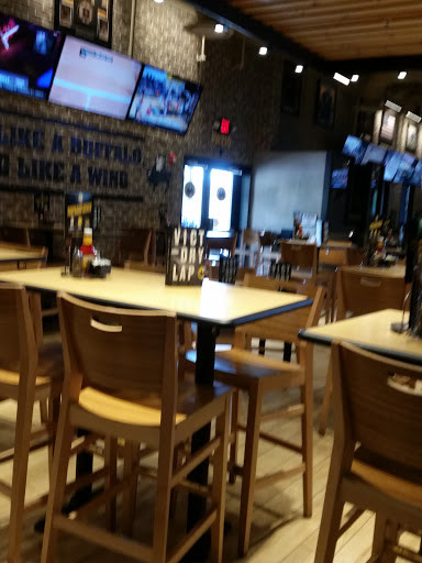 Not worth it. Everyone that works here is under 25 with very little work experience. Staff spends more time talking among themselves rather than waiting on you. All variety of wings and sauces BUT be very careful...they may not be cooked all the way through or cold in the middle. Seems they must pre-make them up and place under heat lamp until you order. Stay away from the desserts...just a waste...very tiny portions....AND no coffee is served what so ever! Although this is a chain I suggest the 99 or Jake n Joes which is down the road. I will be surprised if this lasts another year.