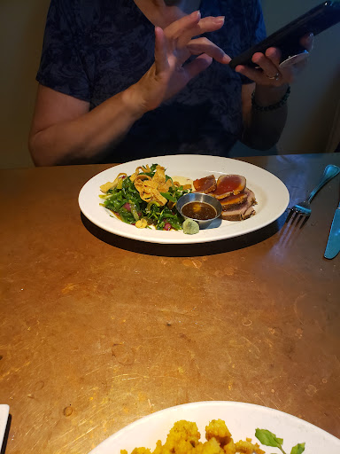 Mixed review, the salmon was amazing, done just right moist, good portion, the glaze was tasty, and we both agreed we would get that again. Had the tuna, three nice sized pieces. All three were so filled with fat that I have up trying to eat it. Very disappointing, going to a fish restaurant, ordering what I would think would be a signature dish and being that poor a cut was not right. All three pieces were like that, wouldnt order that again. Wont be back anytime soon.