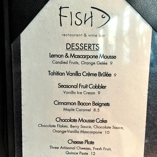 Fish Restaurant & Wine Bar – Marlborough, MA – 4/11/2016 My server Jennifer was awesome…, Knows the menu… Makes the right suggestions… And is actually quite funny… The restaurant has an open kitchen design so you can see the staff create the food… The aroma in the restaurant it’s absolutely to die for! On aroma alone I give them a 15 out of a possible 1-10!… They bake the bread in house and serve it with herbed whipped butter… After my third time having it, I’m not fan… They do everything else very well… For starters… The Mediterranean fish soup… Medley of fresh salmon, swordfish, haddock and tuna…, root vegetables of potatoes & carrots, tomatoes, peppers, celery and rouille… absolutely mind blowing delicious! For the main this evening… A 12 ounce roasted swordfish chop served with buttermilk dressed mixed greens, parmesan truffle fries finished with house made red chimichurri sauce... The fish was cooked to perfection and remained warm throughout consumption… As far as the salad…, Just the right amount of dressing… It paired nicely with the fish and root vegetables… the fries…, best Ive ever had! Although the desert choices looked great, I exercised restraint and finish the meal with just my signature cappuccino… Which by the way was made perfectly…, a combination of rich coffee flavor and perfectly shaped head… Another great meal at Fish Restaurant & Wine Bar... I will be back! P.S. Ive been to many really great restaurants and THIS is a great restaurant!
