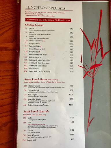 We go often, good sushi along with the usual staples of most Chinese restaurants.