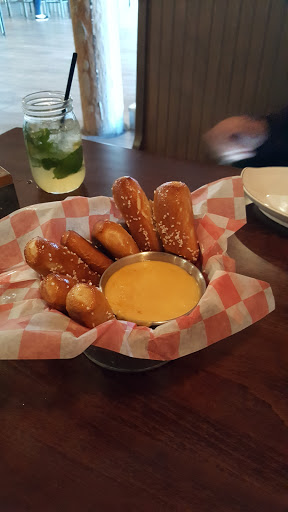 I wish I could separate the bar and the food for review as theyre completely different experiences. One decent, one terrible. Since theyre new Ill leave staffing out of this as I hope itll clear itself up over time. Bar - Decent selection of their brewed beer. Beer was alright, nothing I was absolutely craving to have again. Get a flight of 4 to sample their choices. Atmosphere is good, live music starts at 9 at a stage located close to the bar (if eating dinner cant see due to layout). The whole area is beverage service only, no food unless at the actual bar itself. Plenty of high top tables but found lack of standing room or places to rest your beer when these filled up. Restaurant - Had a 1h 15m wait. Finally seated in the back area which was quieter from the bar noise. Theres A LOT of things on the table that take up alot of room (seperate holder for salt/pepper, another for sauces, table water) we ended up moving this to the floor to have room for our app. Theres many options which look appealing on paper with their extensive menu, execution is where it failed. My wife ordered a burger, when asked how shed like it cooked was surprised to hear "medium" was not an option "We only do pink or cooked all the way thru" was the answer we got back. Pulled pork was extremely dry, steak tips were very chewy and lacked any char so I dont think they were grilled. Very under par meal for relatively higher prices. Would go back for social drinks, unless something changes would not go back for food at all.