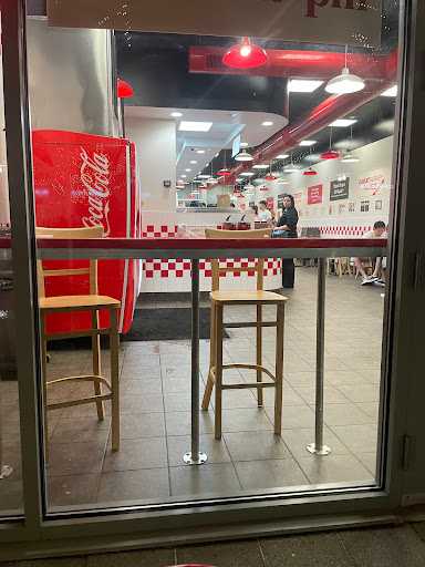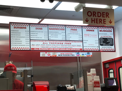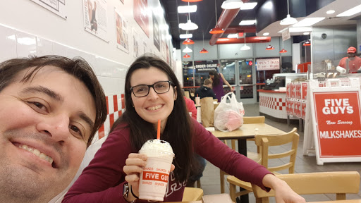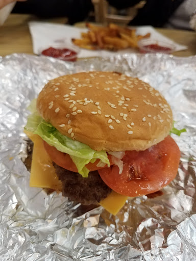 Five guys is, by far, the best burger joint Ive been to in ever, in the world. Its burgers are fresh and taste amazing, notwithstanding it being a fast food restaurant. The menu is simple, and the burgers are totally customizable to have whichever toppings you want. The cajun fries are great The service is very good, even during peak hours. And you get free peanuts.