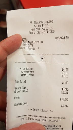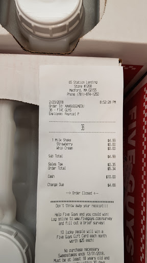 Five Guys is worth the price, its the closest thing you can get to a Hopdoddys up in New England. Get everything on your burger for maximum taste!