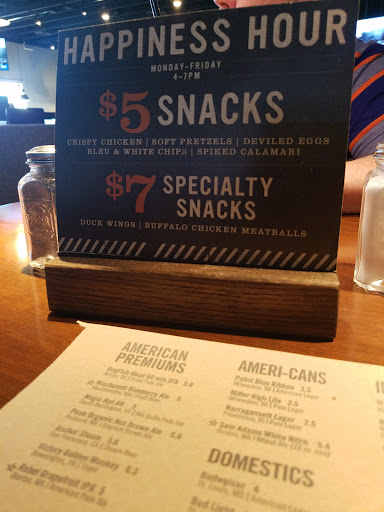 First off to have a waiter sit there and say in front of your group Im not taking them so the new waitress comes over and just chats with a person for a good 15 min made us sit there and wait for our beverages. She never gave us her name. The food was disgusting my husbands tater tots came out burnt and so did his chicken. My burger was horrible and we ordered another round of drinks took another 20 min to get. Had poop or poop like material on bathroom floor. The waitress spilled beers didnt replace them just handed them somewhat empty. The food took way to long for only having about 15 ppl in store last night. The only good thing about that place is that its a pokestop get yourself together restaurant.