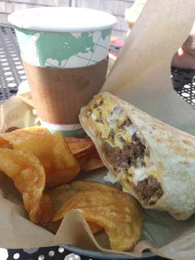 Delicious burrito. Reasonably priced. Espresso machine. Rewards. Booze. Handicap accessible. Dine in. Take out. Indoor/outdoor seating. Fast WiFi. Spacious. Free tattoos!