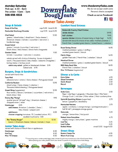 Downyflake donuts is one of my favorite memories from my childhood. My parents used to take my brother and I to Nantucket almost every year and from the time I was about seven my dad and I would get up before my mom and my brother and ride our bikes to Downyflake... best donuts EVER. My mouth water just thinking about them. I havent been to Nantucket in years but my dad and I still talk about those donuts a lot. If youre in Nantucket DONT MISS these donuts. Definitely worth breaking your diet for. :) Cant say I remember the service, but I think the staff could have thrown the donuts at us and Id still be raving about them.