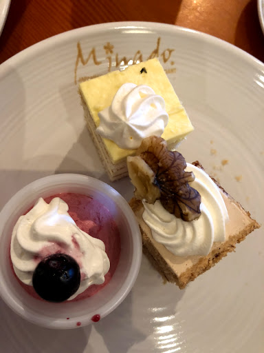 For what it is, Minado is a pretty good restaurant. It advertises itself as a "Japanese Seafood Buffet", and this is a mostly accurate description. The entire venue is very spacious and well set-up, and while the buffet selection isnt the largest, items are of high quality and consistently refreshed. While I dont particularly enjoy seafood, I did find the hibachi stations and the cold salads to be very good, particularly the teriyaki proteins (chicken and beef) and seaweed salads. The dessert station features fresh fruit, a few assorted pastries, and green tea soft serve as well. Lunch is a good deal at under $20 a head, but it can get pricier and more packed over the weekend.