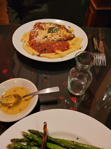 Love the atmosphere and service. The first meal I had was veal picatta. The veal was thick and fatty. My husband who is Italian loved the red sauce. The second time, I ordered the egg plant. Too much sauce and cheese, couldnt taste the egg plant. My husband loved the braciole. So did I. The roasted potatoes were awesome. Salad had too much dressing. The broccli rabe rocks.