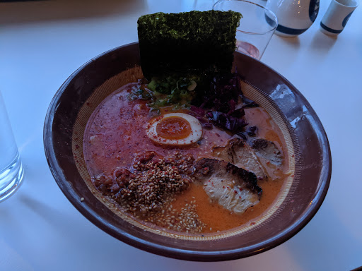 Amazing. Simply amazing. This is a tiny little place so expect to wait to get a seat if youre going during peak times. This place was bumping on a Sunday night. The wait staff was obviously overwhelmed but showed hustle, prioritized very well, and didnt show any stress or frustration. They were all very friendly as well which is a huge plus. The food was absolutely delightful. Im new to ramen and am obsessed with anything I can get into my belly. The flavors blended really well and everything added its own dimension. The broth was spicy and had me sweating a bit. Which I love. Im only in town for a week but will most likely be back even though its about 10 miles from my hotel. The saki I had was very high quality and tasted amazing. Ill be having very pleasant dreams of ramen tonight thanks to this place!