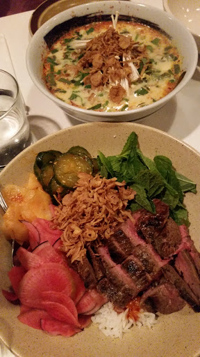Excellent! At first glance, you might mistake this places for a run of the mill ramen place. But once you walk in and check out the drink menu, featuring the like of a bacon infused whiskey cocktail named Umami so far, its clear theres some character here. The shrimp dumplings were amazing and my Udon special was sublime. We had bar seating and the pleasure of chatting with the owner and his chef. They were super cool, very personable and welcoming. Yeah its not cheap, but thems the breaks for top knock Asian fusion in Newton Center. Ill be going back for sure.