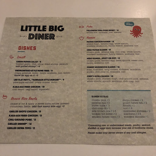 Stop. Right now you must get yourself to Little Big. The ramen is second to none: a rich broth containing fresh noodles, veggies, pork, egg, and more. The rice bowls are singularly fantastic. The burger is better than any other burger in the area -- and it aint even a burger joint. Just as important as the excellent cuisine is the staff: the chef, the sous chef, the wait staff -- they are friendly, fun, helpful, and just amazing.