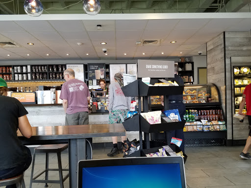 A smaller Starbucks but the parking is ample and customer turnover in the store is decent. Seating is limited but the location is hard to beat. If you are driving consider leaving out the back driveway to the side street to get to the light and you wont have to fight traffic to make your turn.