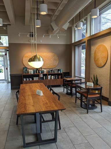 This is a great Starbucks. Ample parking, nice layout, a variety of seating - small tables, a bench, comfortable chairs, a coffee bar. Its usually not too busy, so I dont feel bad hanging out for several hours. Also, the folks behind the counter are all pretty nice. The air system is a little wonky, so sometimes it swings warm and sometimes a little cold.