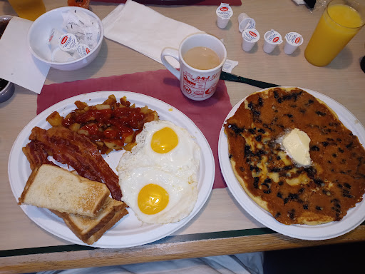 Food is great. Huge portion sizes if your extra hungry (not joking like a pancake is the size of a dinner plate). Great waitresses and such a lovely cute atmosphere. I sugggest on cold day requesting to sit somewhere not near the door because when the door opens it lets in the cold air. All in all great restaurant. Has never let me down