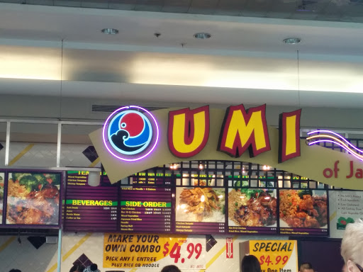 Umi is listed under some sushi-bar listings in its geographic area, but thats not what it is at all. Its in the food court of Emerald Square Mall and only serves 2-3 kinds of chicken, noodles, fried rice, and veggies. Not bad food, but pretty much the oriental (Chinese) standard for a food court. Definiety no sushi to be found!!