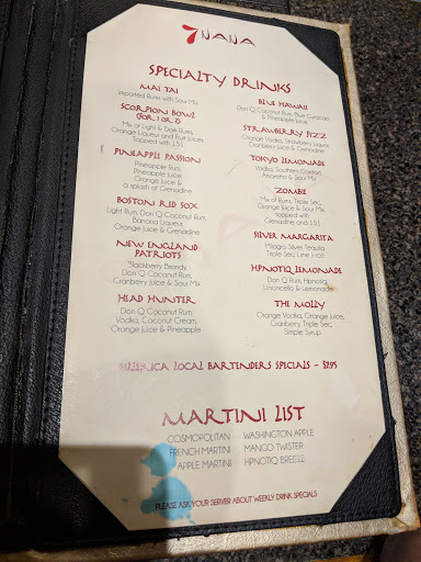 I usually go out to 7Nana every two months or so. Their all you can eat deal is priced very reasonably at $22 per person for dinner Mon-Thu, and $24 or $25 for Fri-Sun. I usually sit at the sushi bar if I can to avoid long waits for the servers who are usually busy. The sushi chefs are very outgoing and nice guys, and very skilled at their craft. All you can eat includes both sushi bar and hot kitchen items. I highly recommend the seafood teriyaki skewer. Service is usually very prompt, however sometimes when it is busy it is difficult to get the servers attention. Hence, why I usually sit at the sushi bar. The Mai-tais here are delicious - not too boozy, and not too fruity. One thing I would like to point out is that with the all you can eat deal, after your first order, place smaller orders. If you are unable to finish whats left on the plate and leave multiple pieces, they will charge you extra.