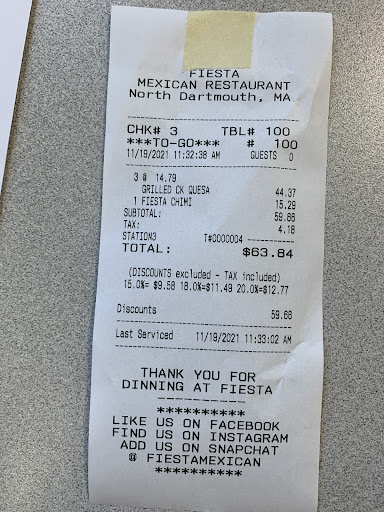 I Love this place my wife and I never have anything bad to say about Fiestas great people 1-1 service