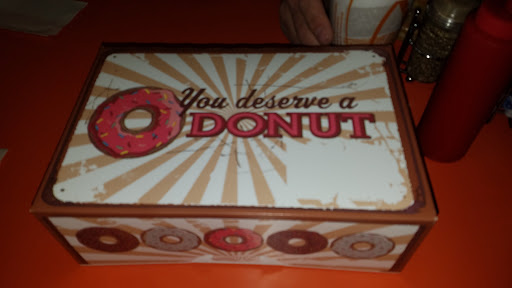 Its a homey little breakfast diner with some amazing donuts. We stopped here for breakfast which was typical American breakfast consisting of the usual eggs, sausage, bacon, waffles, etc. Nothing really outlandish on the breakfast menu to speak of. For three people the total bill was only around $20 so a very good value indeed. The staff/owner is a very nice Cambodian family, consisting of a mother, her daughter, and uncle. The service was good, fast, and friendly. The diner is a bit dated in its appearance, but clean and comfortable. The real treat was at the end when I picked up a donut for the road. It was a bit sold out by the time I arrived, around 11 AM, so not too many choices left. I grabbed an apple fritter which was just amazing. Crunchy on the outside with nice chunks of apple marbled into the dough. If youre accustomed to the many Cambodian donut shops they have out west in California this place wont disappoint you.