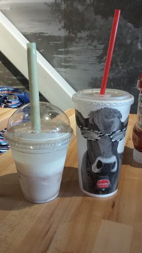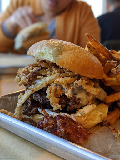 Nothing special here. We wont return. Shakes were made 20 mins before food arrived. Burgers were more grease than meat. Meat was over cooked and very thin. If you like your burgers crispy this place is for you. The only seats available were pub tables with metal stools, no backs. Pub tables so close together and close to the wall you cant get in and out of seating. Everyone sitting at these tables has to move to accommodate. This place needs double the dine in space. Standing room only when ordering. I dont see how their "real" ice cream shakes were real. They are made of bagged liquid poured into a soft serve machine like everyone elses. They dont taste like the real ice cream shakes I remember. I normally wouldnt order a shake. Fries were good. This place is basically a Five Guys.
