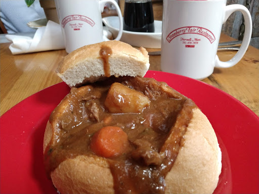 Quaint little restaurant thats way to get to off of Highway 3. My wife and I stopped on our way into Boston for a quick bite before our flight. Friendly and quick service and a pretty good menu. The clam chowder was creamy and thick, and the half turkey sandwich was good. My wife got an omelette with a side of fruit and it was a good size meal. If you love strawberries, the decor is not to be missed.