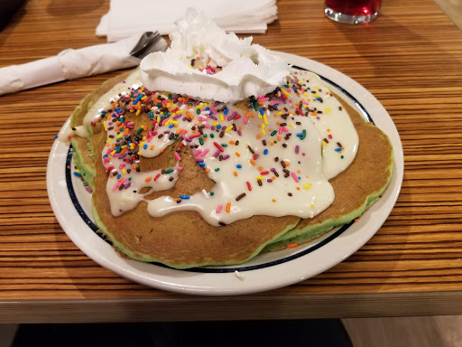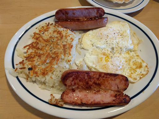 Its an IHOP, great place when you want breakfast anytime of the day. Went there for Brunch. Had to wait about 5 minutes for the hostess to come to the desk to seat us. Once we were seated, the waitress came over and immediately got us coffee and took our orders. I ordered the low calorie blueberry wheat pancakes with scrambled egg whites and turkey bacon. It came out in good time however the egg whites were not ready but the waitress gave me the pancakes to start. about 5 minutes later the egg whites were delivered with the bacon, which actually worked out fine as I had just about finished the pancakes. Great place to go for breakfast anytime and nice servings