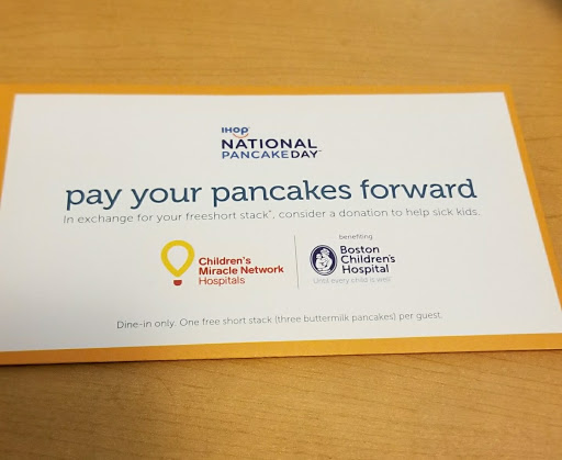IHOP is a loyalty program! We always go back to them. This one is a busy location and on all visits, we had to wait to be seated. The staff is courteous, food helpings enormous and some of the best coffee in Boston served in a pot! Go for it.
